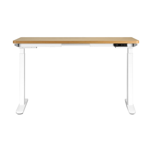 140cm Dual Motor Adjustable Standing Desk White and Oak