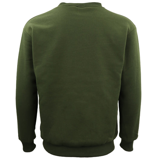 New Adult Unisex Plain Pullover Fleece Jumper Mens Long Sleeve Crew Neck Sweater, Olive, M