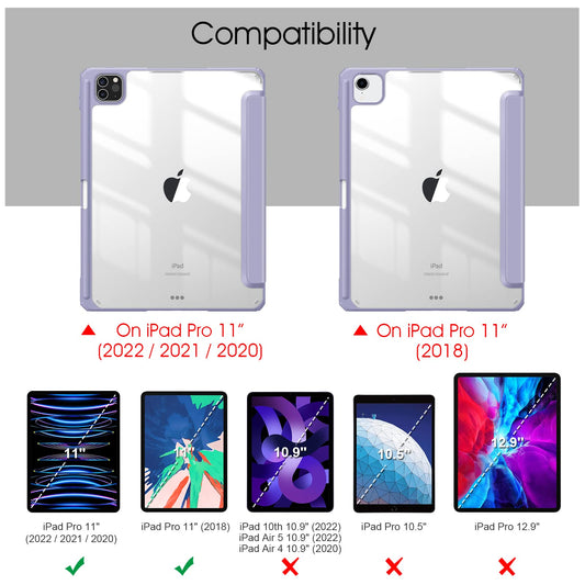iPad Pro 11 Inch 2020-2022 Soft Tpu Smart Premium Case Auto Sleep Wake Stand Clear Cover Pencil holder Purple