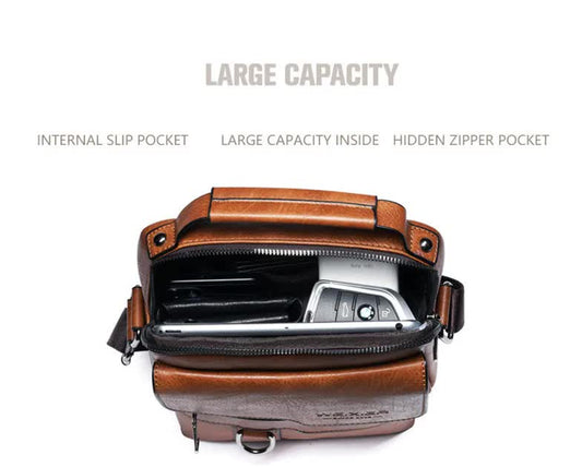 Men's Vintage Leather Shoulder Bag - Multi-Compartment Crossbody Messenger Bag 22cm(L)*8cm(W)*26cm(H)(Black)