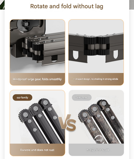 Grey Wall-Mounted Foldable Clothes Drying Rack - 3-Section Aluminum with 15 Windproof Hooks