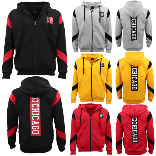 Men's Fleece Zip Up Hoodie Shirt Chicago Bulls 23 Michael Jordan Sweat Jacket, Red, S