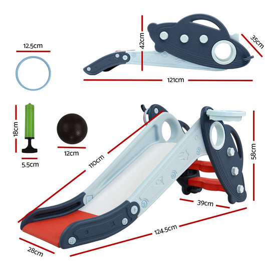 Keezi Kids Slide Set Basketball Hoop Rings Outdoor Playground Toys 110cm Blue
