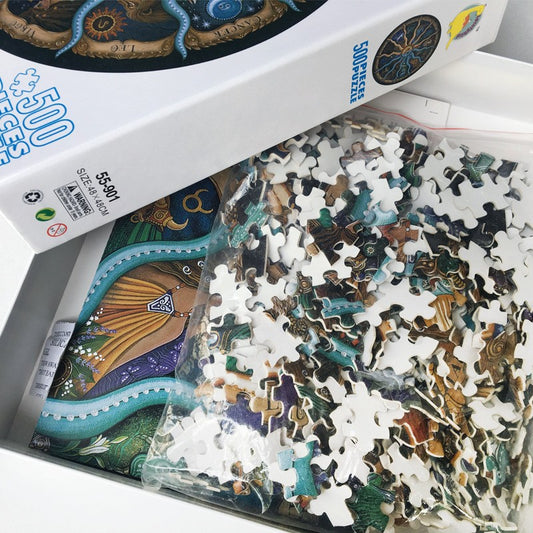 500 Piece Zodiac Circle Jigsaw Puzzle - Colorful Astrology Sun and Moon Jigsaw Puzzle for Adults and Kids