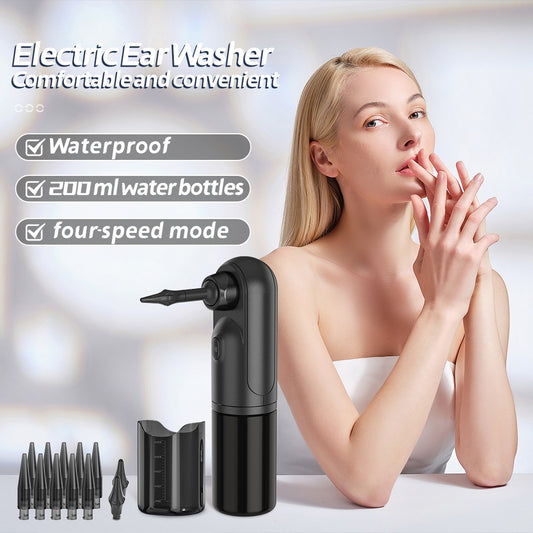 Rechargeable Electric Ear Cleaner & Washer Kit - Waterproof Ear Wax Removal System with 4 Modes & 12 Tips(black)