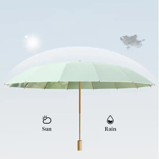 Traditional Chinese Style Folding Umbrella - Yellow Floral Design with 16-Rib Structure