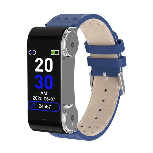 Bluetooth Headset Bracelet With Hr / Bp Monitoring & Temp. Measurement - Blue