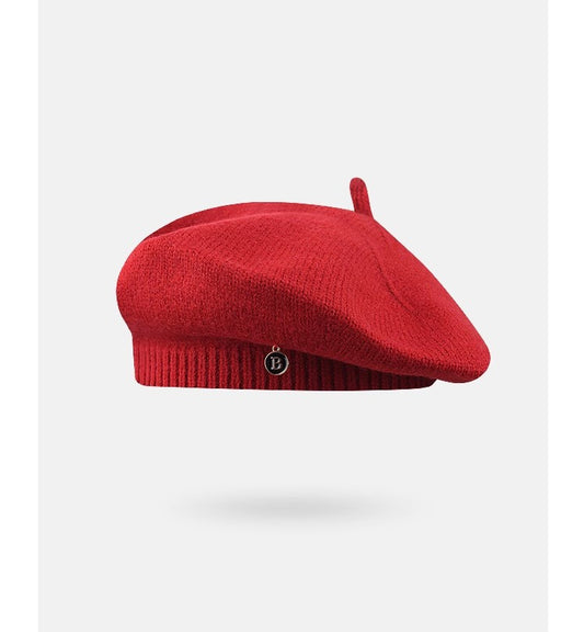 Red Vintage Inspired Knitted Beret - Stretchy & Comfortable Wool Blend Cap