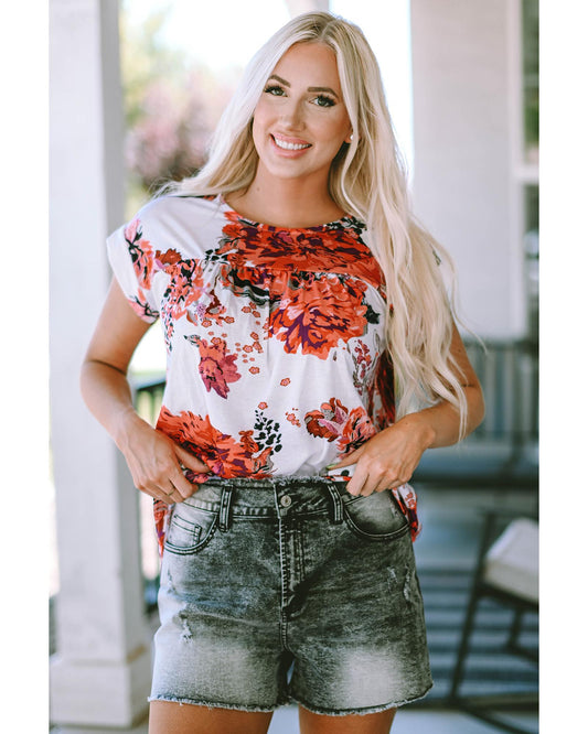 Azura Exchange Print Keyhole Back Short Sleeve Babydoll Blouse - XL
