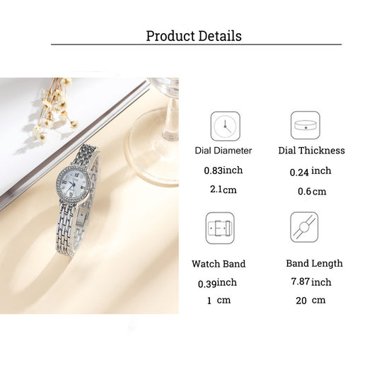 Silver Roman Diamond Quartz Watch with Bracelet - Women