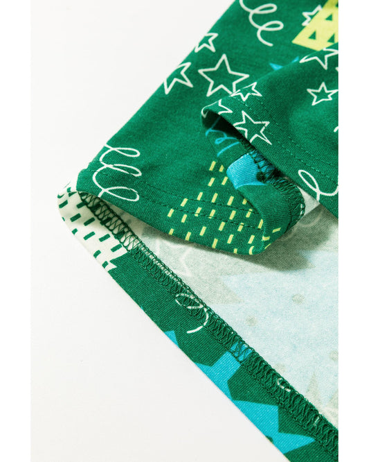 Green Christmas Tree Print V Neck Tee and Pants Lounge Set - S