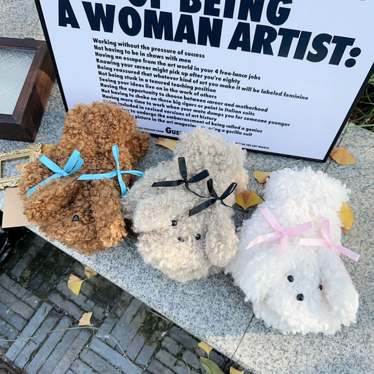 Beige Fluffy Cat Ear Winter Earflap Hat Women Knitted Warm Cold Weather Cap