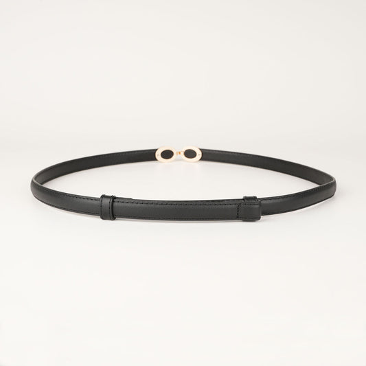 Luxury Top Layer Cow Leather Belt Women's Simple Decorative Jeans Belt Versatile Fashion Thin Belt (Black)