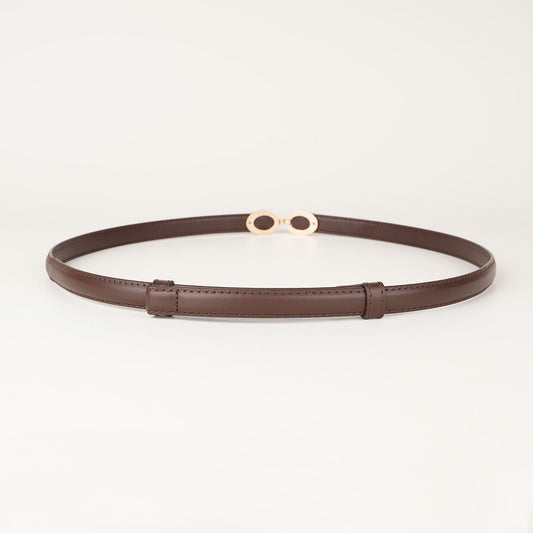 Luxury Top Layer Cow Leather Belt Women's Simple Decorative Jeans Belt Versatile Fashion Thin Belt (Apricot)