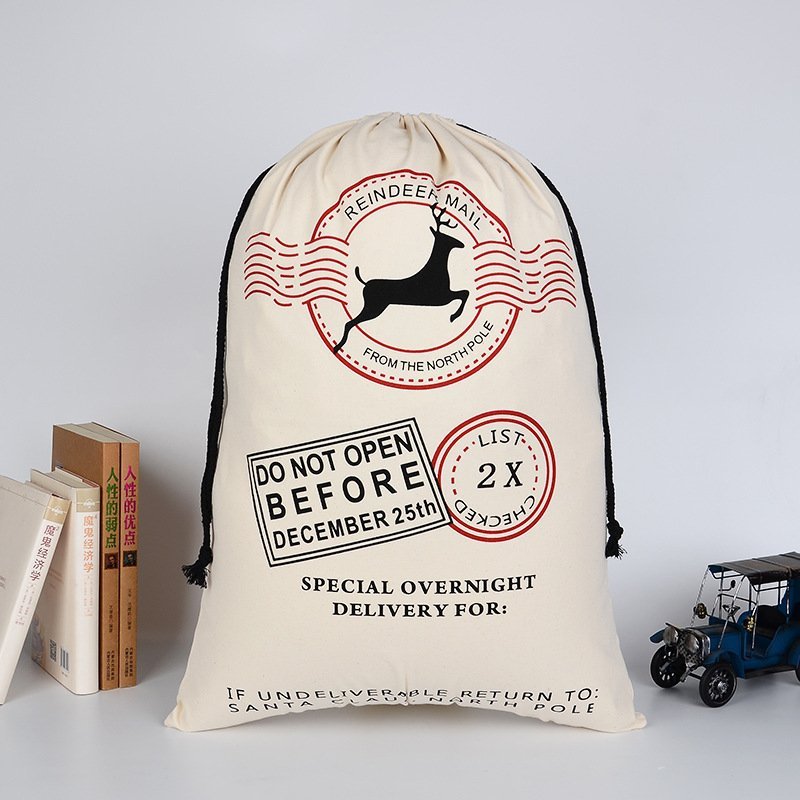 50x70cm Canvas Hessian Christmas Santa Sack Xmas Stocking Reindeer Kids Gift Bag, Cream - Reindeer Mail