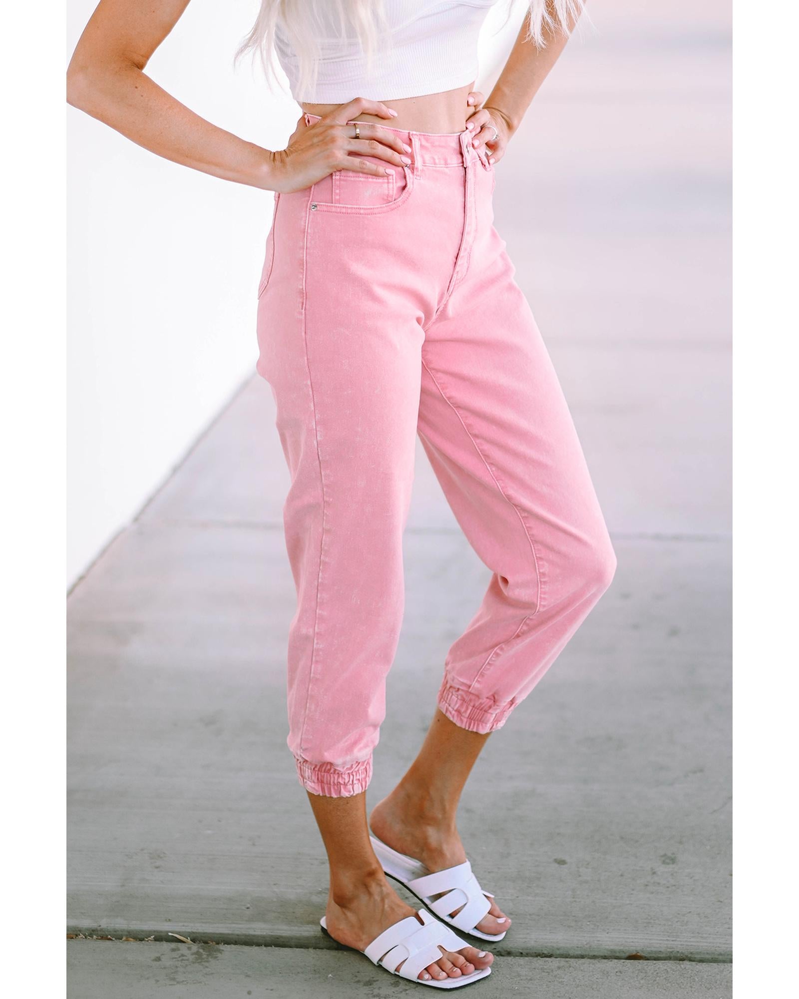 Azura Exchange Acid Wash Elastic Cuffed Jeans - 10 US