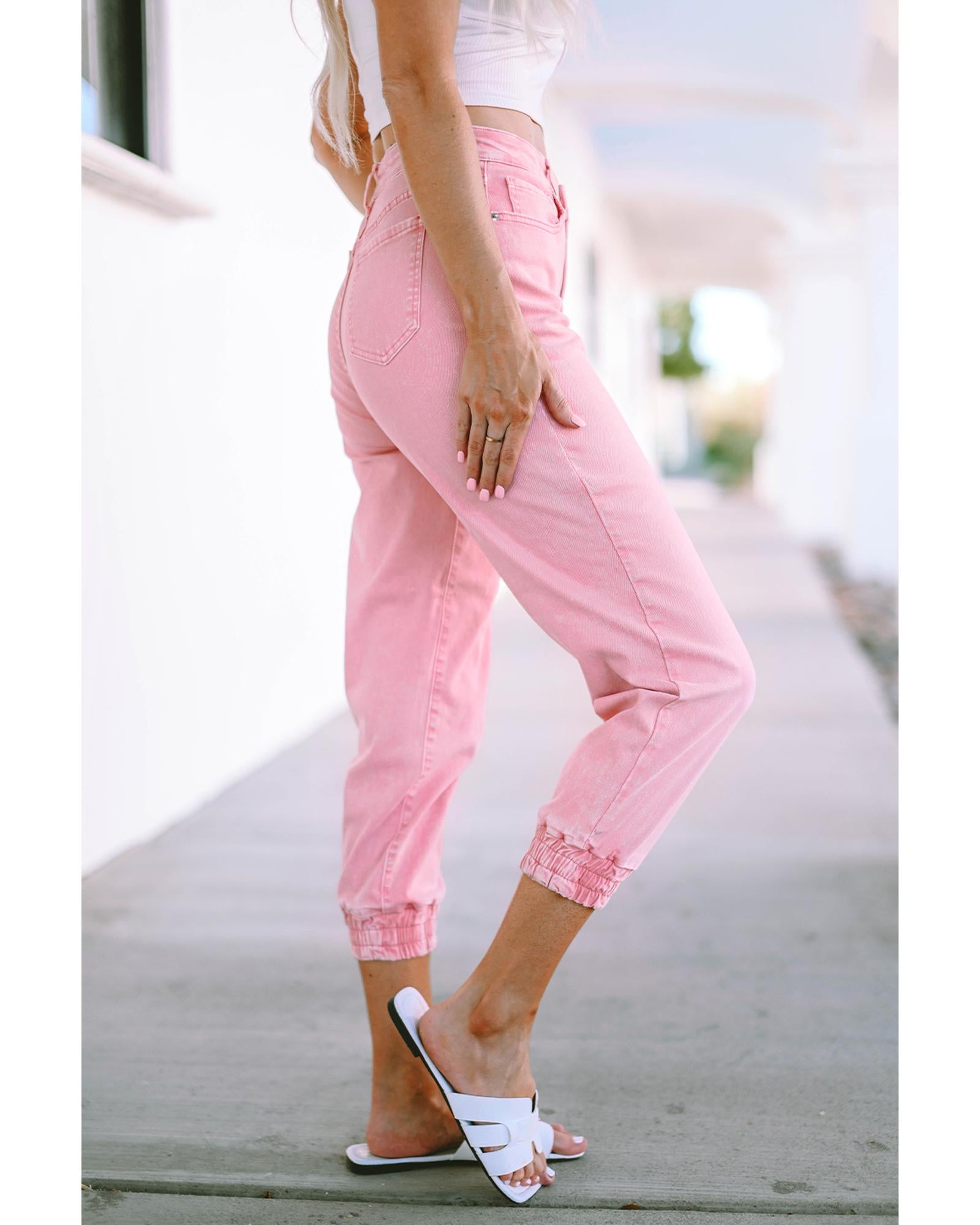 Azura Exchange Acid Wash Elastic Cuffed Jeans - 8 US