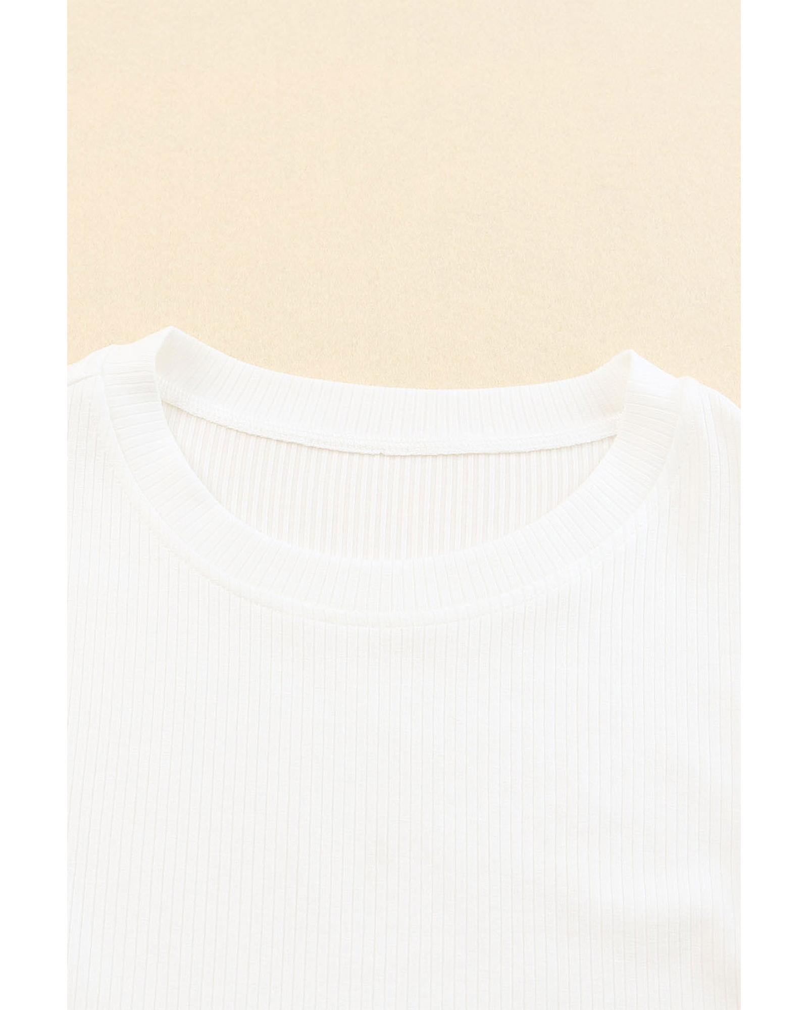 - Luxurious Beige Dotty Mesh Ruffle Sleeve Ribbed Knit Top