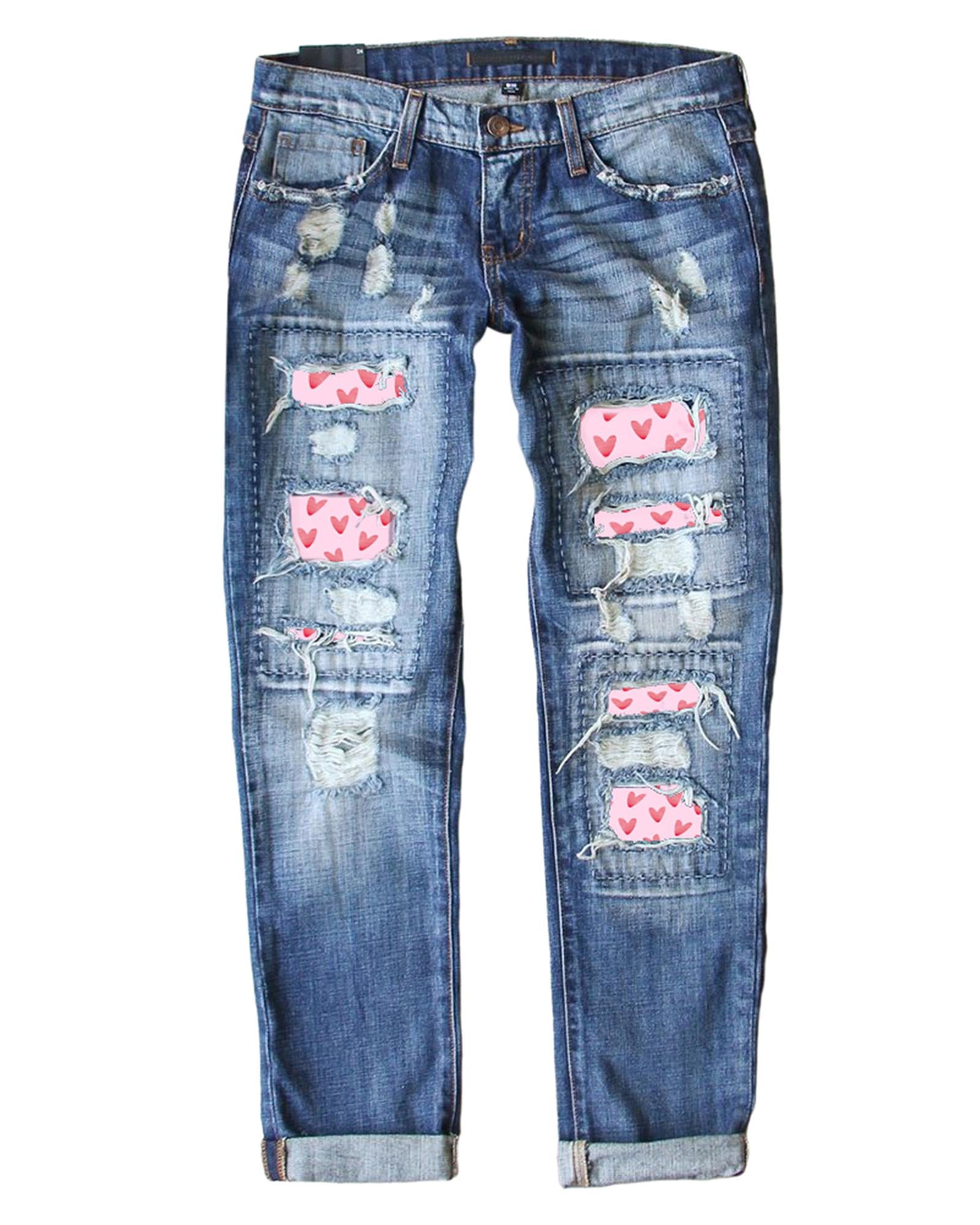 Azura Exchange Heart Patchwork Jeans - 8 US
