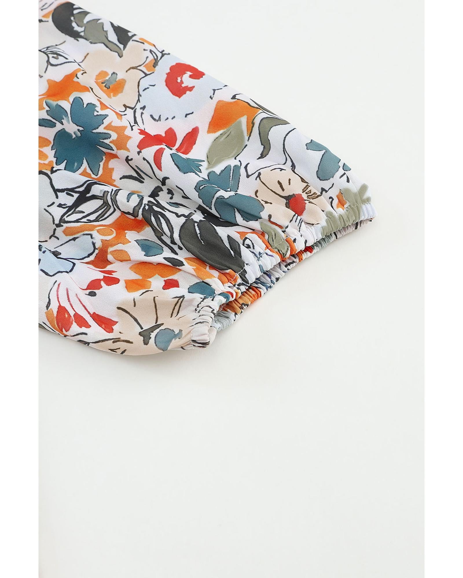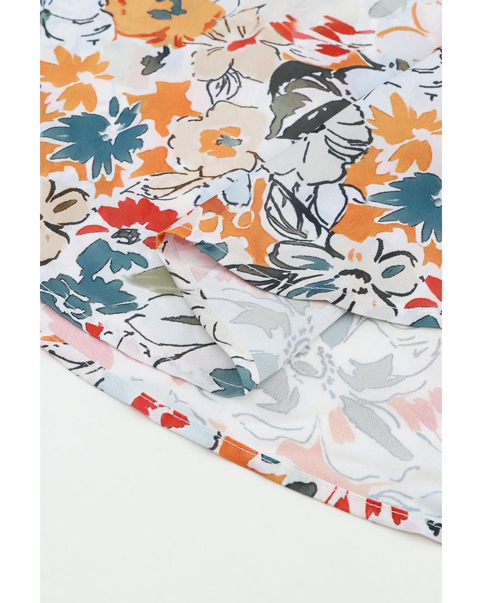 Azura Exchange Multicolor Split V Neck Flower Print Blouse - S