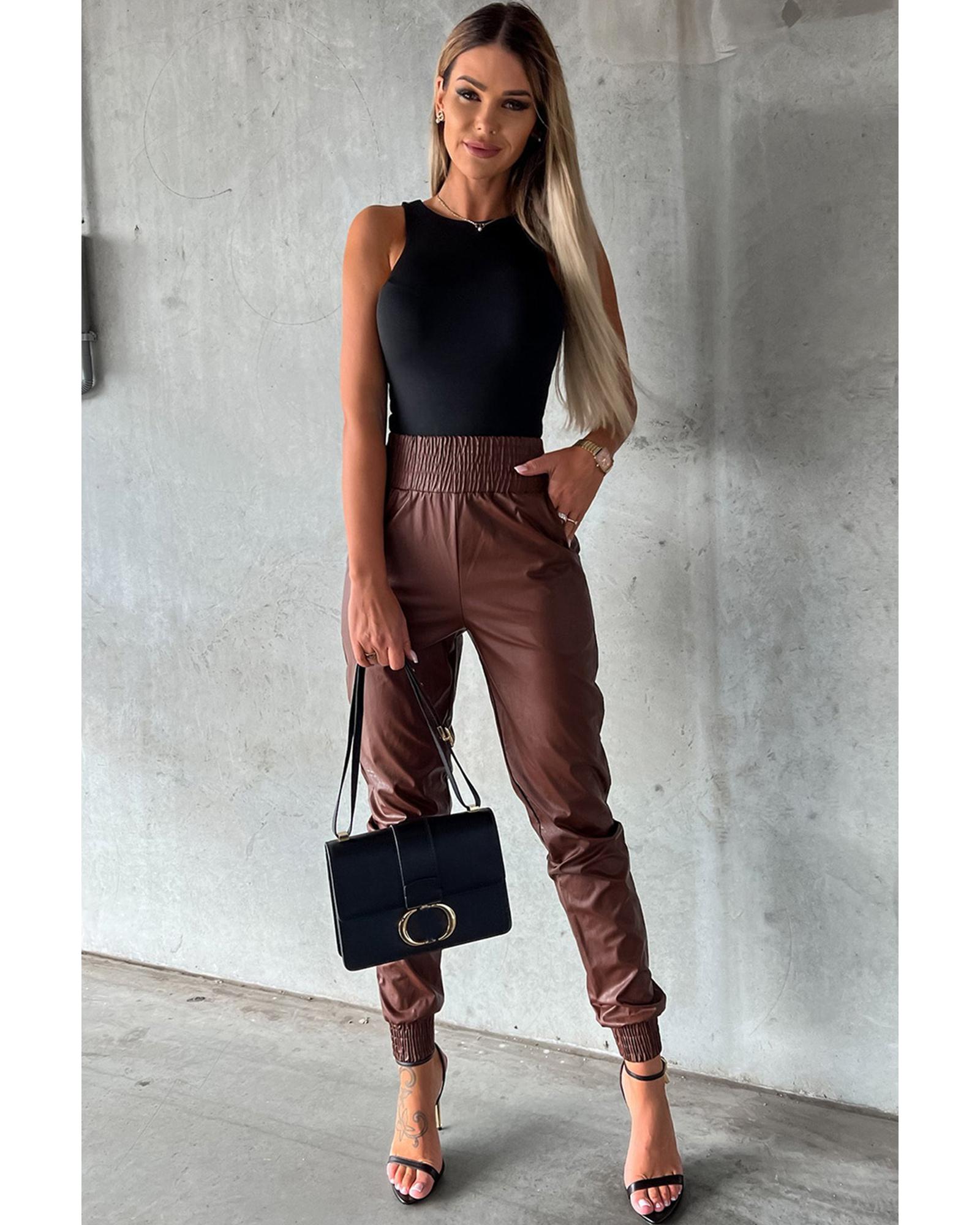 Azura Exchange Smocked High-Waist Leather Skinny Pants - XL