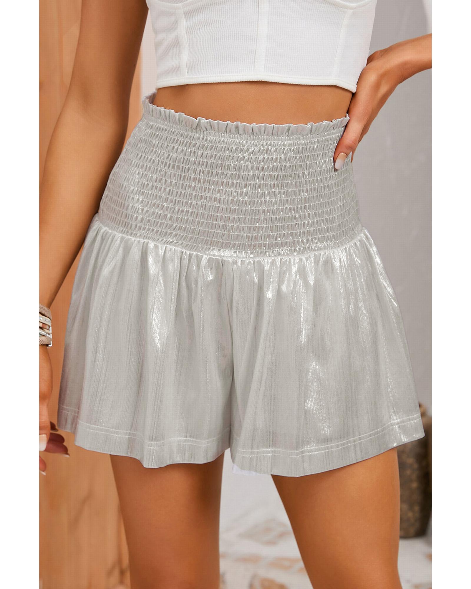 Azura Exchange Smocked High Waist Shorts with Metallic Sheen - XL