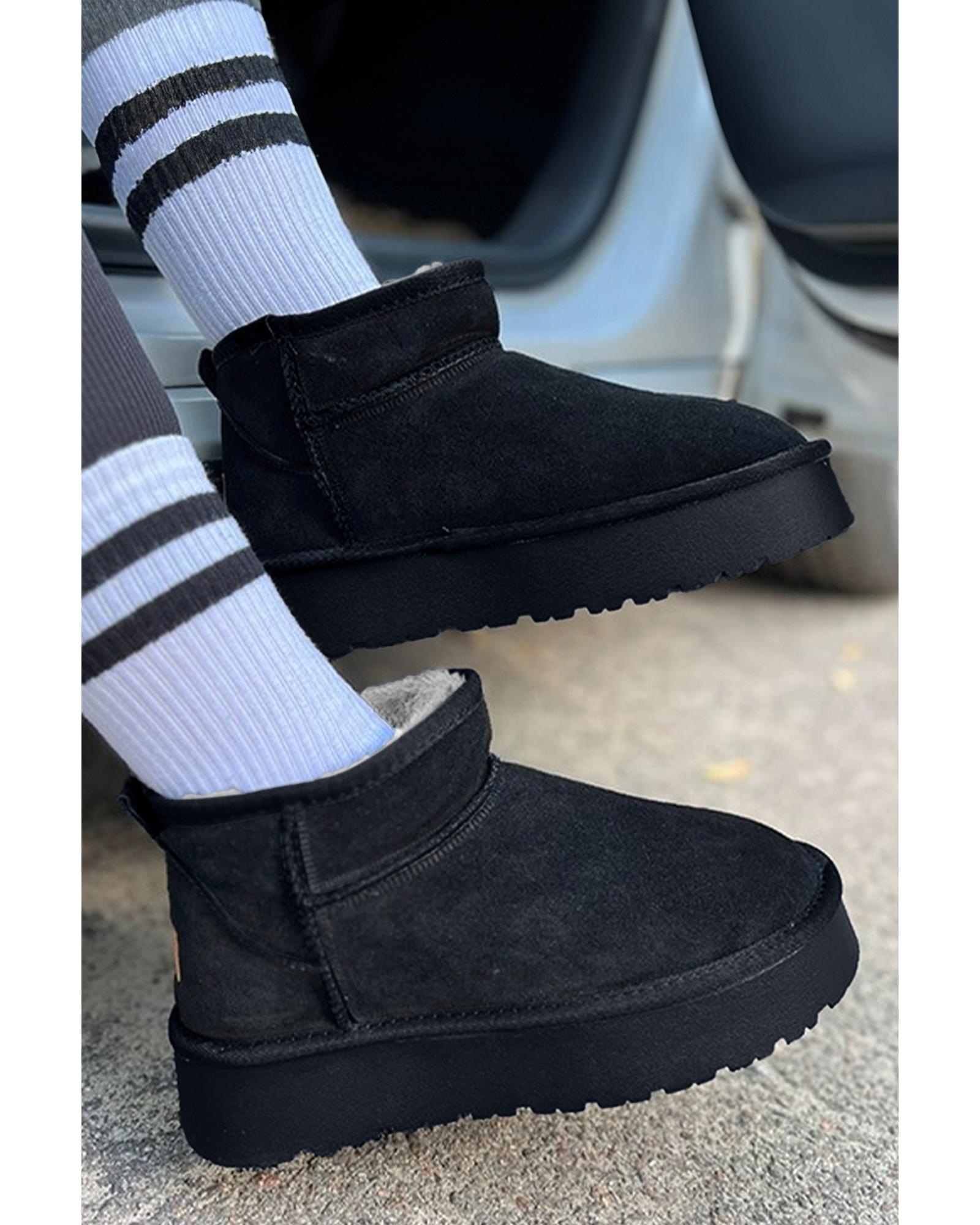 Black Faux Fur Lined Suede Ankle Snow Boots - 39 EU