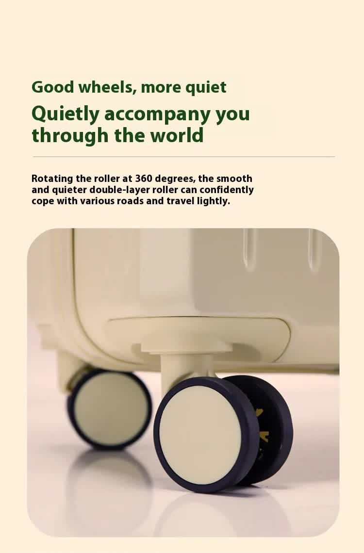 Smart Carry-On Suitcase with USB Charging Port - Travel in style and convenience with this innovative 24-inch carry-on suitcase. Designed for modern travelers, it features a built-in USB charging port to keep your devices powered, a convenient cup holder, and a hook for hanging bags or accessories. This durable suitcase in elegant white combines functionality with a sleek design, making it the perfect companion for business trips, vacations, or weekend getaways.